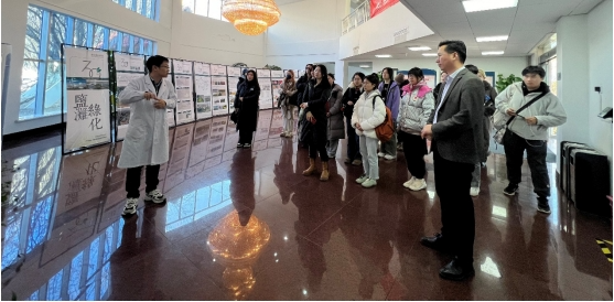 会后,师生们参观了滨海重盐碱地生态治理国家企业技术中心,听取研究人员介绍公司盐碱地治理、水盐动态监测以及耐盐植物引种筛选进展情况。